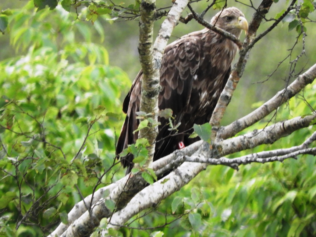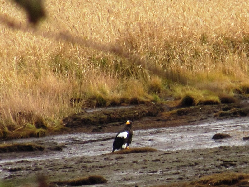 ポロト沼にサケが戻ってくると、オジロワシがそれを狙って集まって来ます。