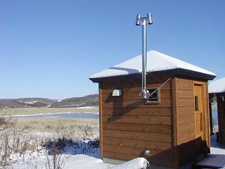 薪で暖めるサウナがお風呂の隣にあります。